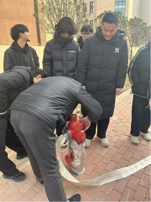 赵国安讲解了学校的消防预警系统和消防整体布局,强调了宿舍内用火、用电的安全规范,普及了校园日常防火措施、初期火灾扑救方法以及火灾逃生技巧等关键知识。