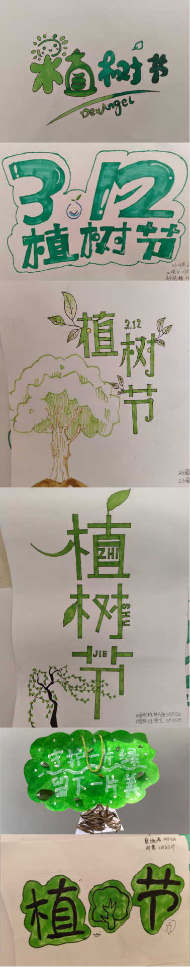 活动中,学生充分发挥想象力和创造力,利用多种形式的字体来设计植树节的标题,在设计中巧妙融入“绿色”“环保“生态”元素,号召大家积极参与全民义务植树活动,像对待生命一样对待生态环境。此次活动共收到作品11件,经过活动组委会公开评选,最终评选出一等奖1件,二等奖2件,三等奖3件。