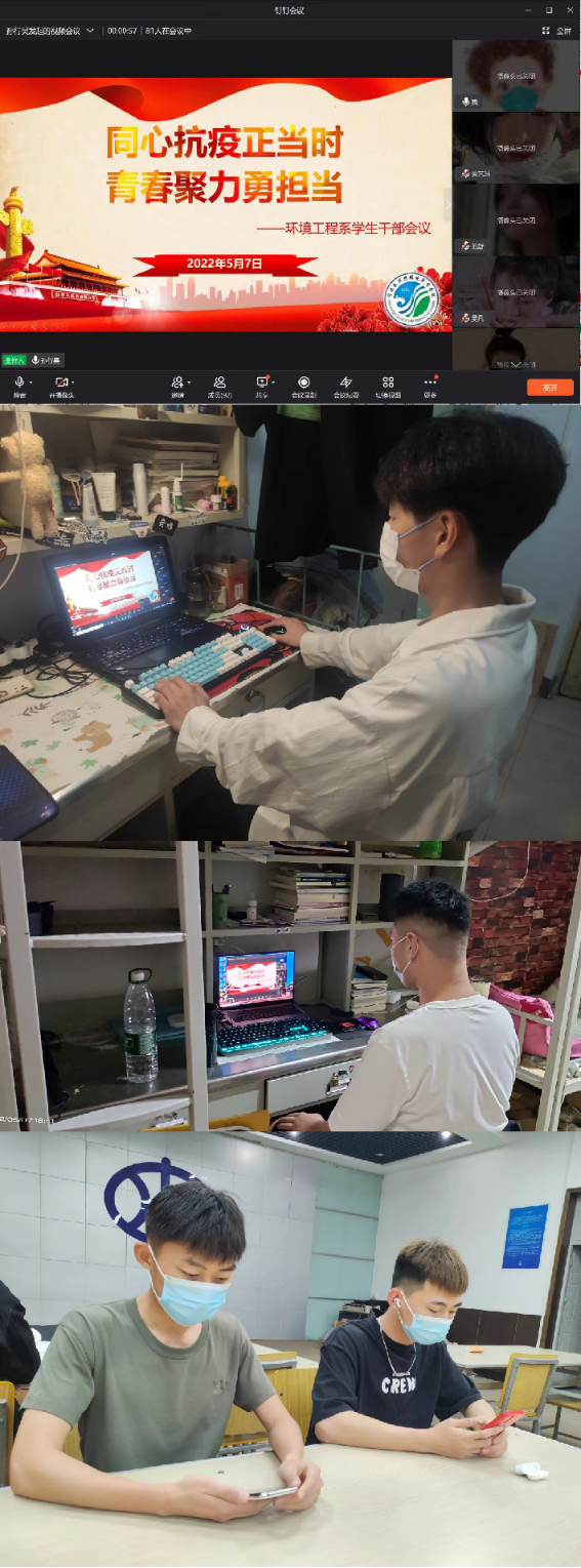 5月7日,环境工程系召开“同心抗疫正当时,青春聚力勇担当”学生干部线上会议。会议根据学校疫情防控网格化管理要求,对本系疫情防控工作进行了再部署,并就校园静态管理期间学生工作存在的困难进行了充分讨论。会议要求,全系学生干部要积极担当、甘于奉献,自觉践行伟大抗疫精神,为学校抗疫工作贡献青春力量。