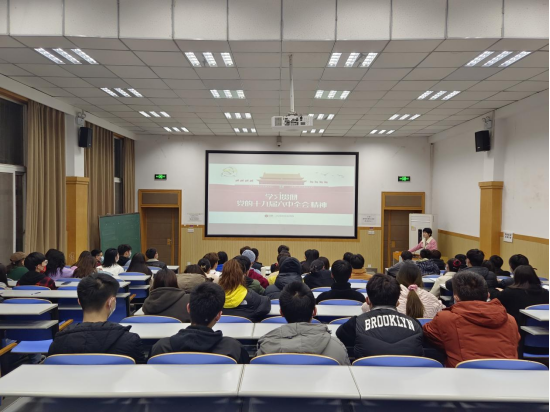 11月28日,环境工程系学生党支部开展学习贯彻党的十九届六中全会精神主题党课,系学生党支部书记董晓明主讲,系全体学生党员、预备党员和入党积极分子参加。