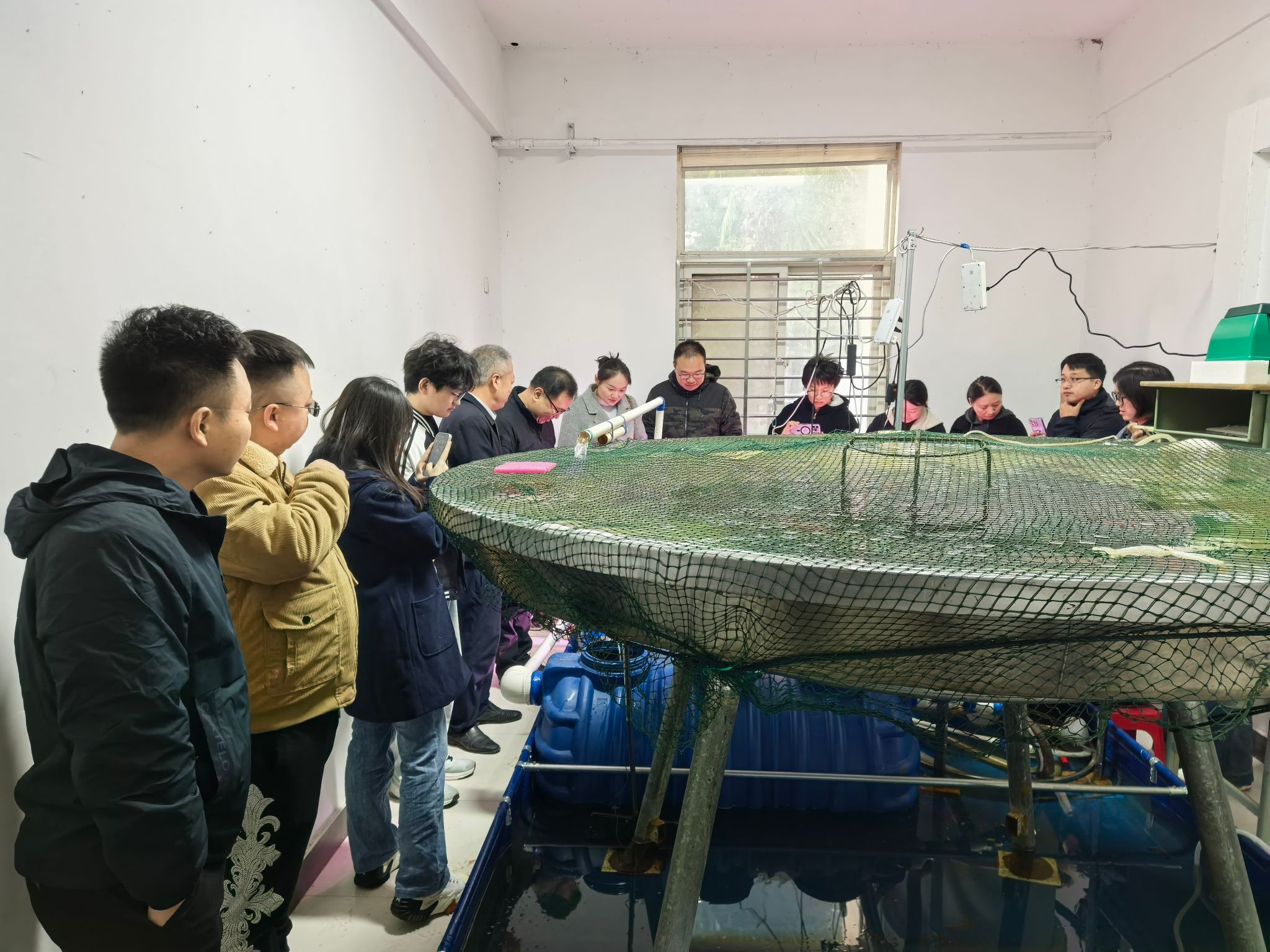 随后,在郑州市农业技术推广中心水产站书记、高级水产师郭江涛的陪同下,学院调研团赴郑州千山万水农业有限公司(“168”技术集成与示范区之一)进行实地考察,并就基地建设、技术难点与运营情况,与生产负责人进行了交流。