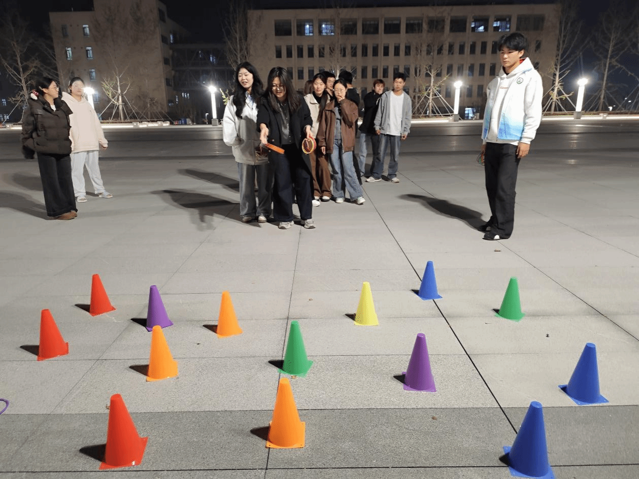 “诗韵重阳,知识大闯关”作为首关,以诗词与民俗为题,引导同学们在思索与应答间走进重阳的文化内核。“遥知兄弟登高处,遍插茱萸少一人”等经典诗句的诵读,不仅是对记忆的唤醒,更是对传统情感的共鸣。“投壶问鼎,福运登高”环节还原古礼之趣。同学们凝神屏息,执矢投壶,在一次次尝试中体味古人礼仪风范,也在欢声笑语中传递着节日的喜悦。“圈住重阳,福运连连”则将民俗游艺带入现场。五彩缤纷的福圈划出弧线,也圈出同学们对美好生活的向往。技巧与运气并重,轻松中见真情,热闹中蕴祝福。最后一关“重阳祈福·时空胶囊计划”将整场活动推向情感的高潮。同学们在便签上认真书写对亲友的牵挂、对未来的期许。这些心愿既可投入“祝福盲盒”与他人交换温暖,也可封存为“时光信件”,待来年重阳重启,见证成长与心愿的延续。