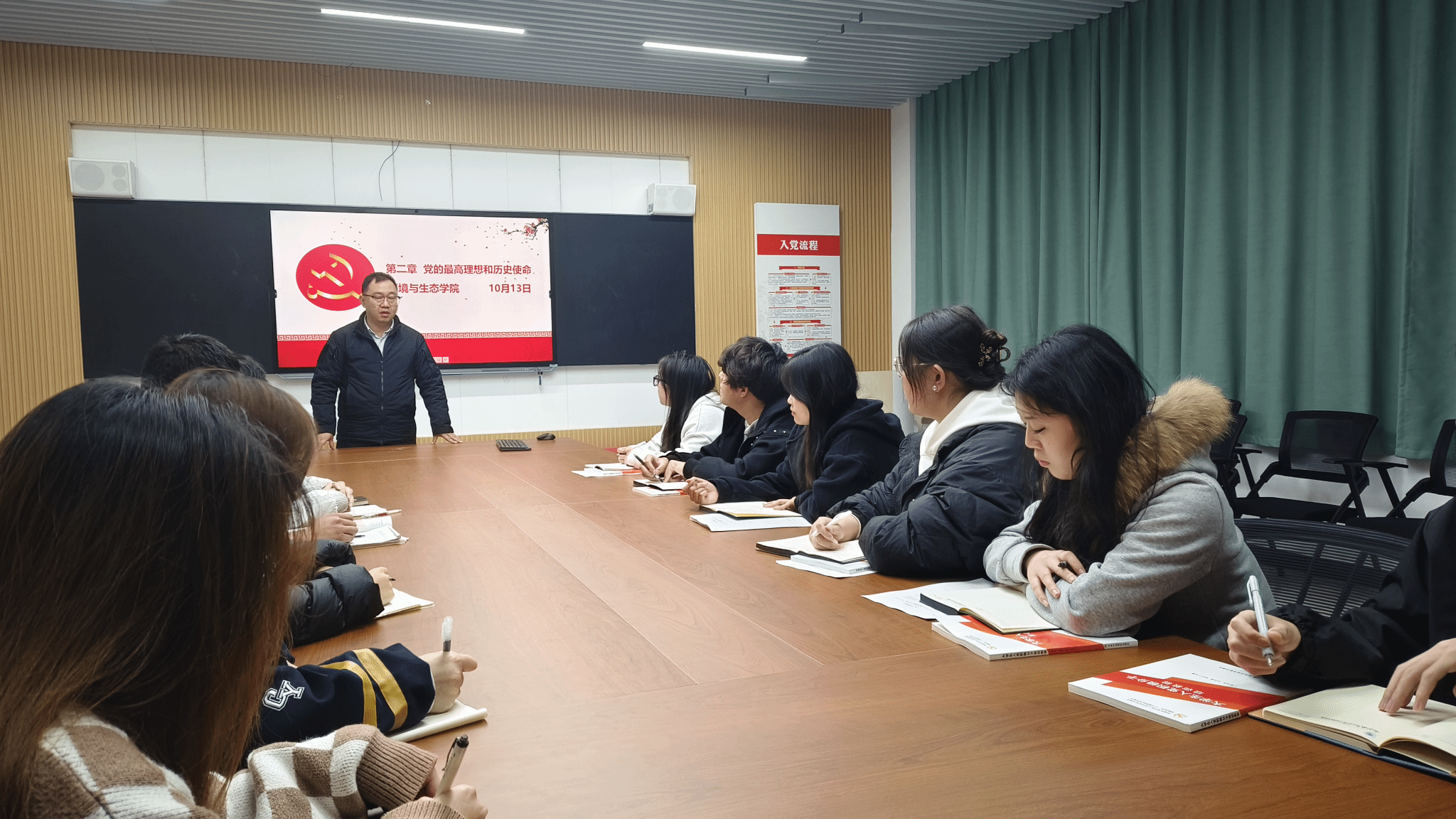 10月13日下午,环境与生态学院在笃行楼205教室开展第二期党的理论知识学习班专题授课,主题为“中国共产党的最高理想和历史使命”。活动由院长张剑老师主持,2025年9月入党积极分子参加。