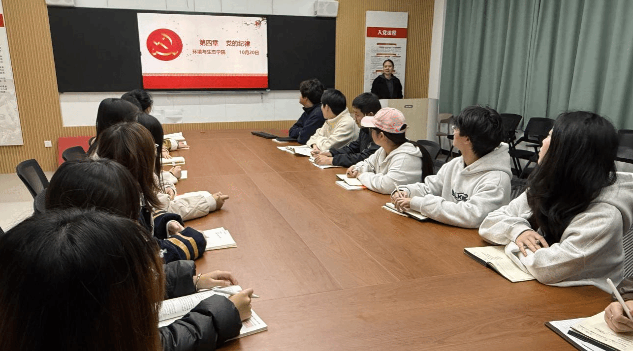 10月20日下午,环境与生态学院在笃行楼205教室开展第四期党的理论知识学习班暨“党的纪律”专题授课。在环境与生态学院副院长郭雪白的主持下,2025年9月入党的全体积极分子共同参加了本次理论培训。
