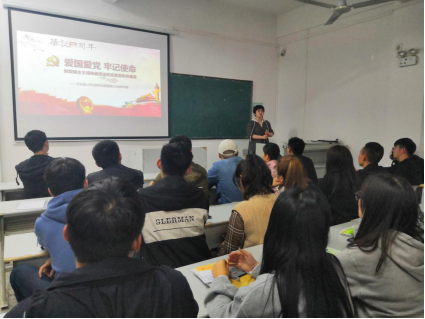 10月24日下午,环境工程系在综合楼407教室组织开展党课学习,系学生党支部书记董晓明以“爱国爱党,牢记使命”为题为2019级有入党意愿的同学、18级入党积极分子80名学生上了一堂精彩党课。