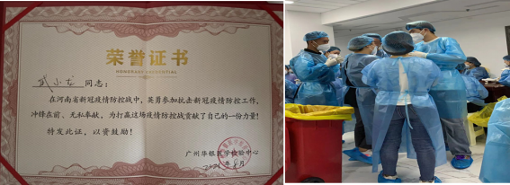 8月6日-8月20日,武小龙在河南省郑州市广州华银医学体验中心担任核酸检测志愿者,主要负责接收核酸检测样本,对样本进行统计归类,上传样本检测信息。因为人手欠缺,他经常工作到深夜,却从不说累。他说:“很荣幸自己能为养育我多年的城市尽一份力,虽然个人的力量微不足道,但是河南人民在灾难面前众志成城、同舟共济的精神始终激励着我。”