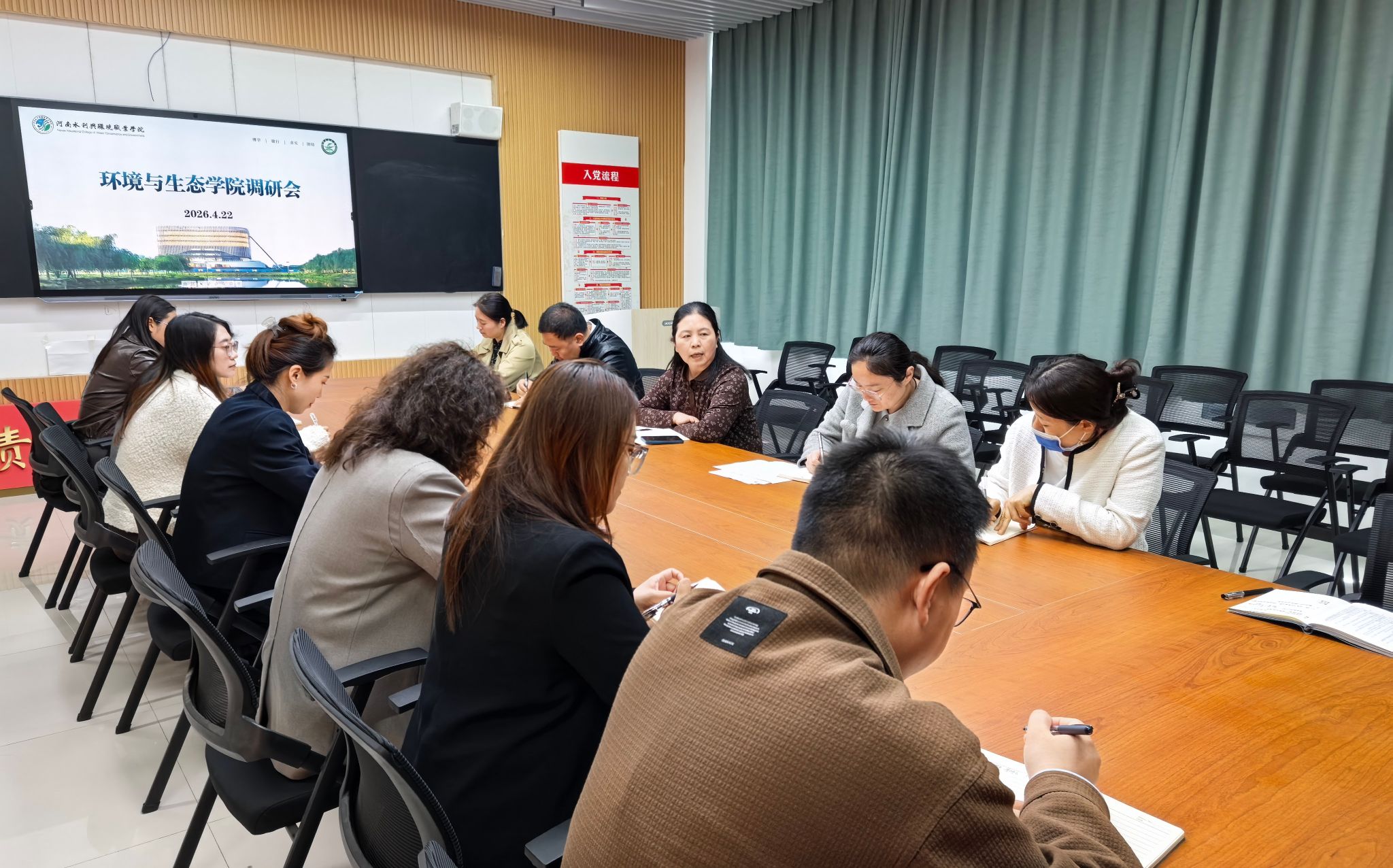 为深入贯彻落实党中央决策部署和校党委工作要求,3月24日下午,环境与生态学院在笃行楼205会议室召开专题学习会,开展科级以下干部、党员学习贯彻党的二十届四中全会精神培训。学院党总支书记邢伟明主持会议并领学,全体科级以下干部、党员参加学习。会上,邢伟明传达了校党委培训通知要求,带领大家研读文件内容。她强调,学习贯彻党的二十届四中全会精神是当前一项重要政治任务,全体干部、党员要切实提高思想认识,不断增强学习的政治自觉、...