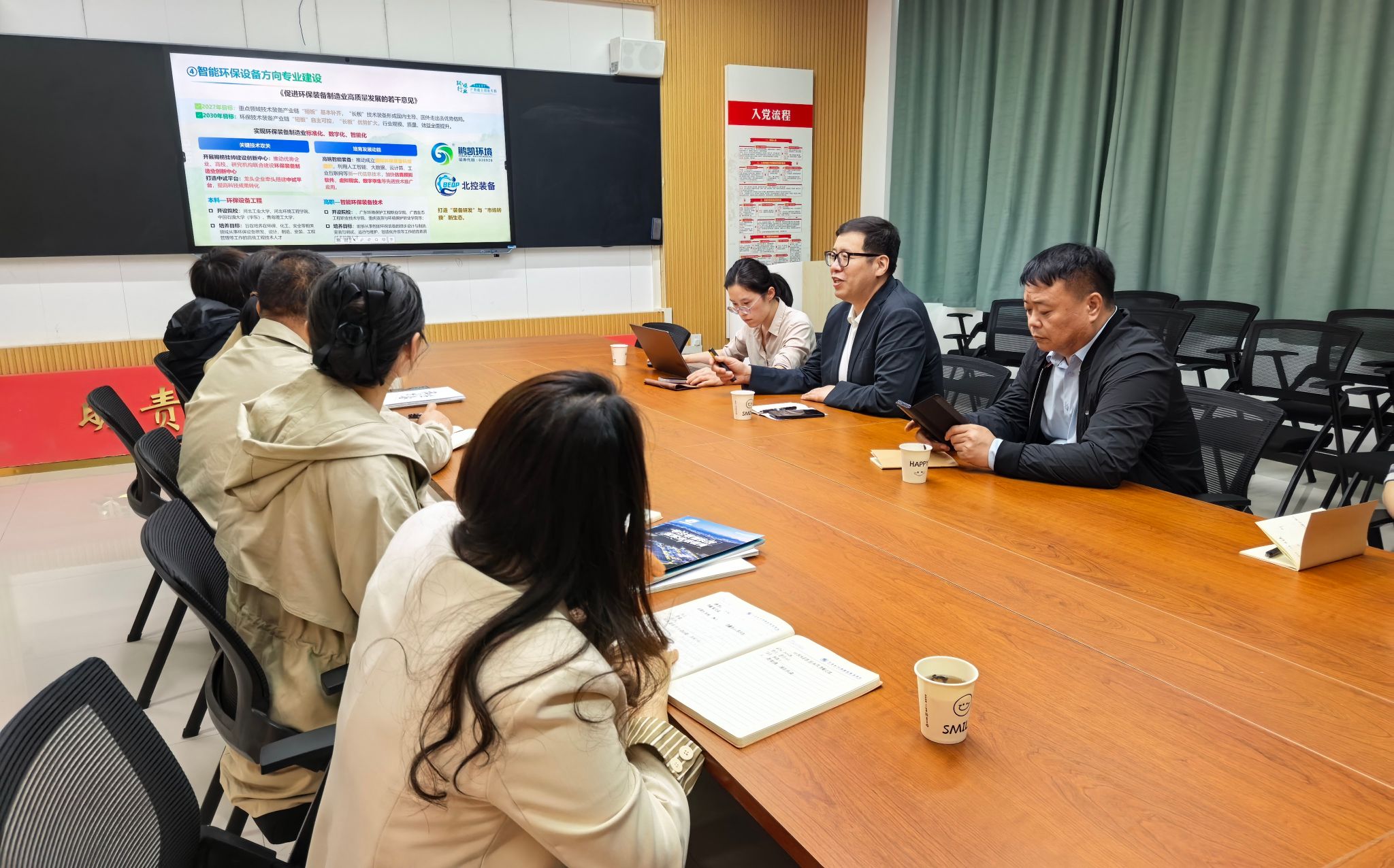 张剑介绍了环境与生态学院专业设置及发展方向、实习实训基地建设情况、智能环保装备技术“双高”专业群建设规划。并就校企联建党支部、师生竞赛团队培育、专业调整、实习实践基地、职教出海等问题进行了讨论与交流。