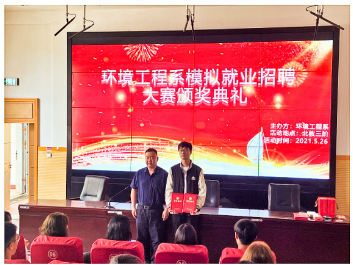 5月26日,环境工程系举行模拟就业招聘大赛颁奖典礼,系主任张剑以及指导老师董晓明、潘春梅、杨舒淇、王慧娟、张靖曼出席典礼。