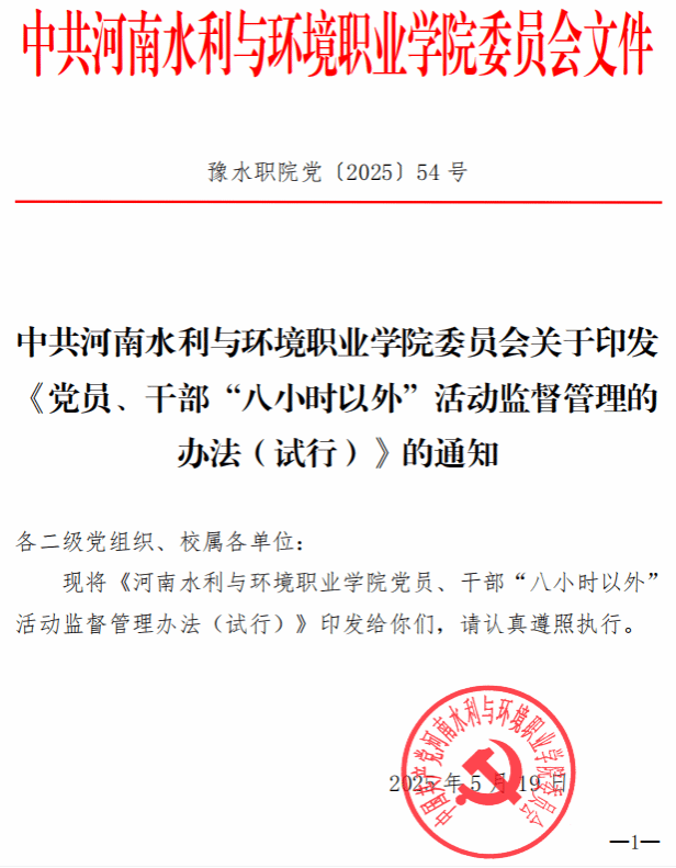 下一条: 豫水职院党〔2025〕44号 关于印发《安全稳定工作责任制实施办法》的通知