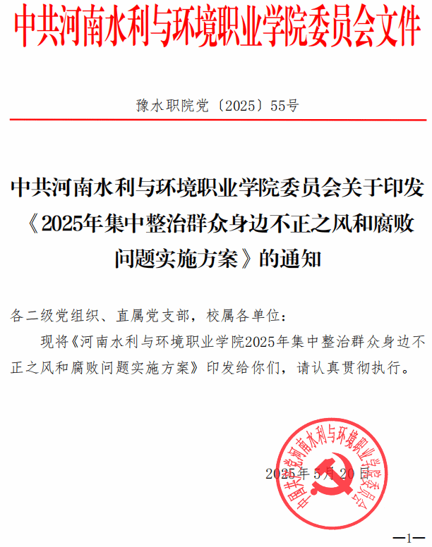 下一条: 豫水职院党〔2025〕54号 关于印发《党员、干部“八小时以外”活动监督管理的办法(试行)》的通知