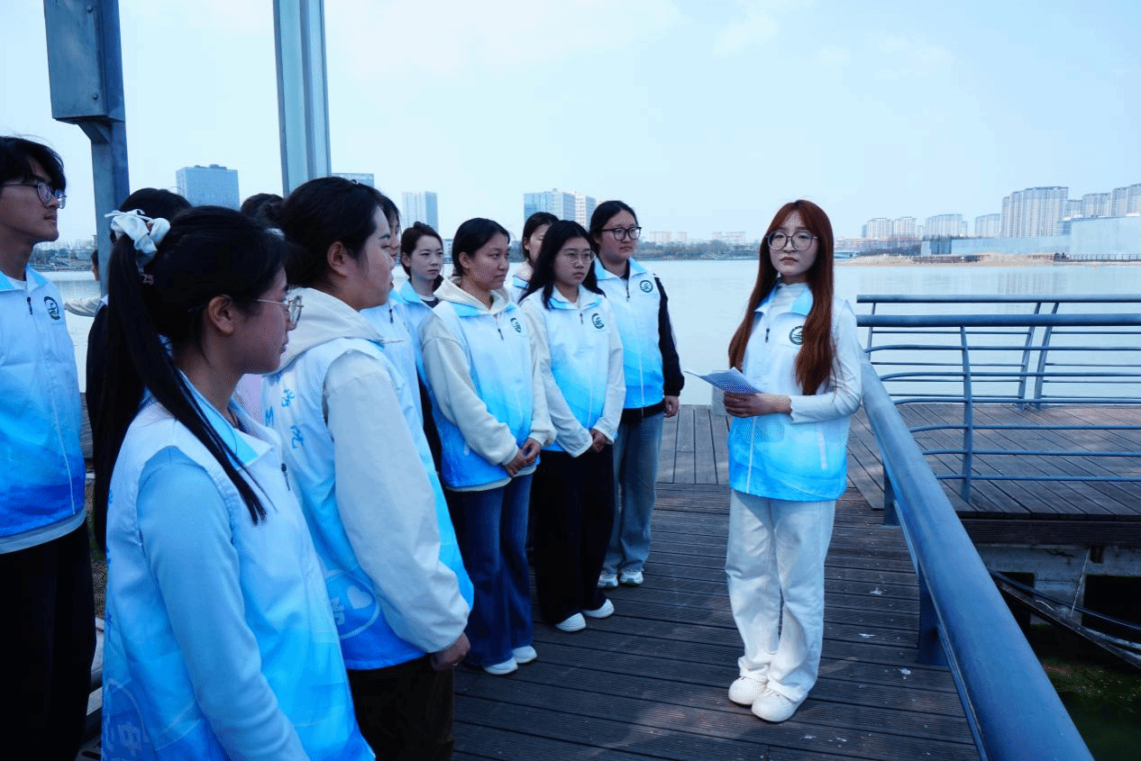 当日下午13时,全体师生在航空港校区北门集结。启程仪式上,学院领导党总支书记邢伟明寄语学子,勉励大家将专业知识转化为行动自觉,在躬身实践中厚植生态情怀。随后,工作人员分发一次性手套与可降解垃圾袋,一场与春天同行的生态之旅正式开启。