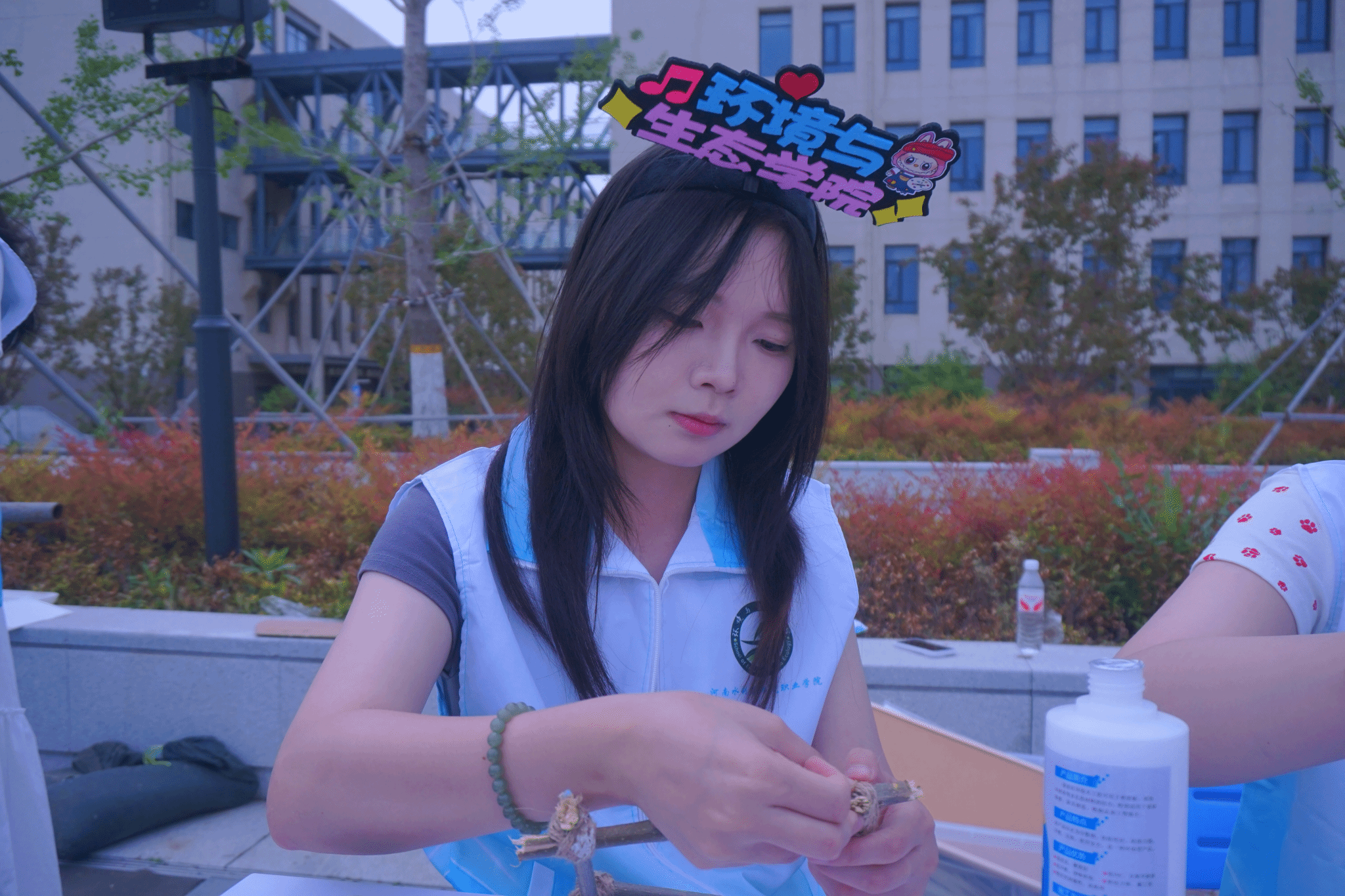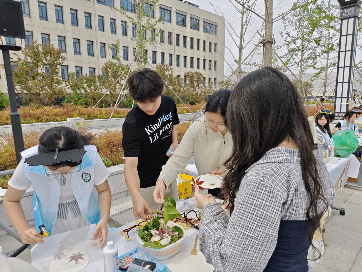 活动现场,同学们在工作人员指导下有序创作,将新鲜花叶精心摆放、轻轻敲印,让植物脉络与色彩自然晕染,定格春日气息;创意发型区以花叶为饰,打造春日专属造型;木片挂饰、植物木框创作中,大家巧搭素材,将春日美好封存为特色艺术品。创作中,学生规范操作、保持场地整洁,践行文明环保理念。