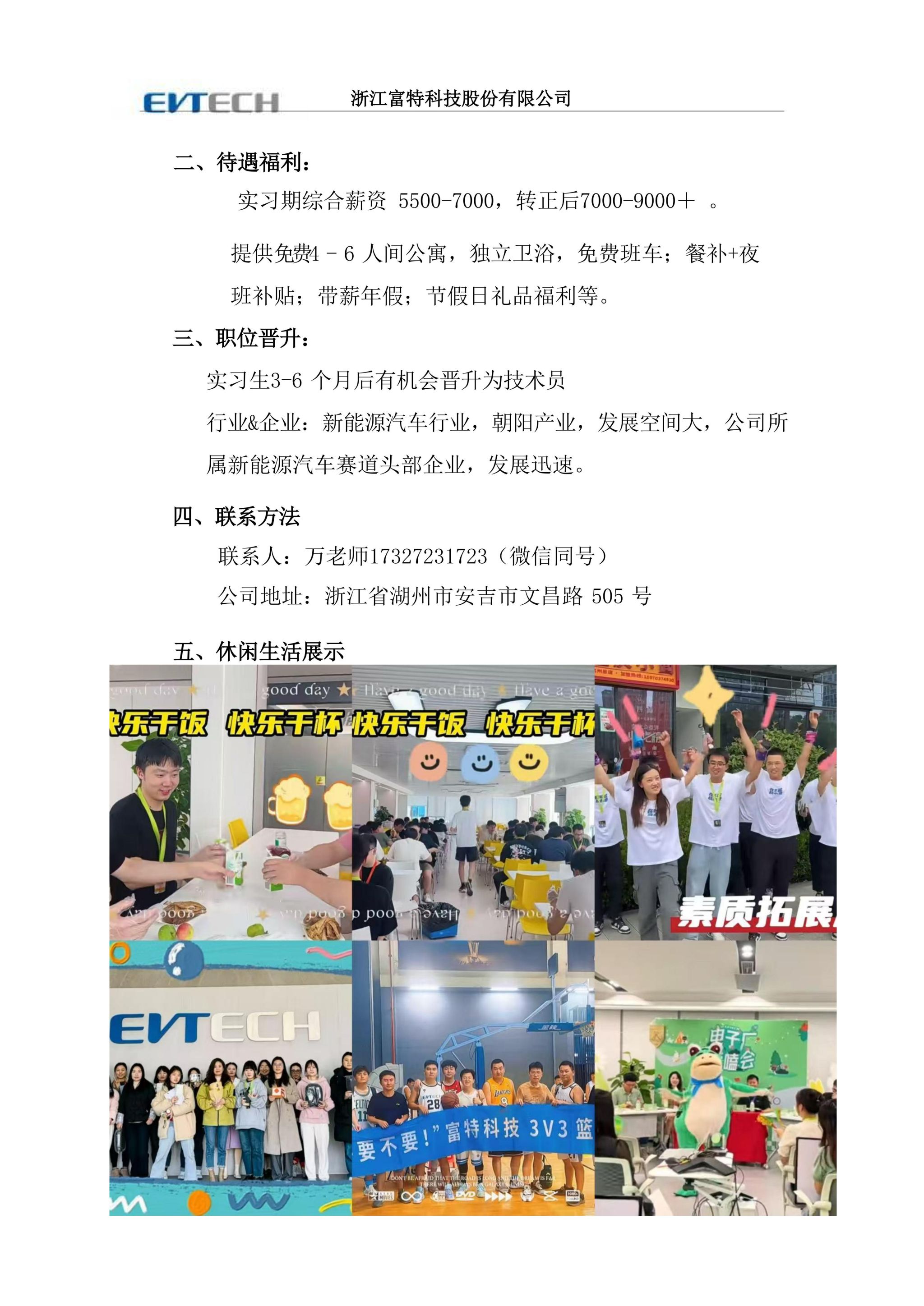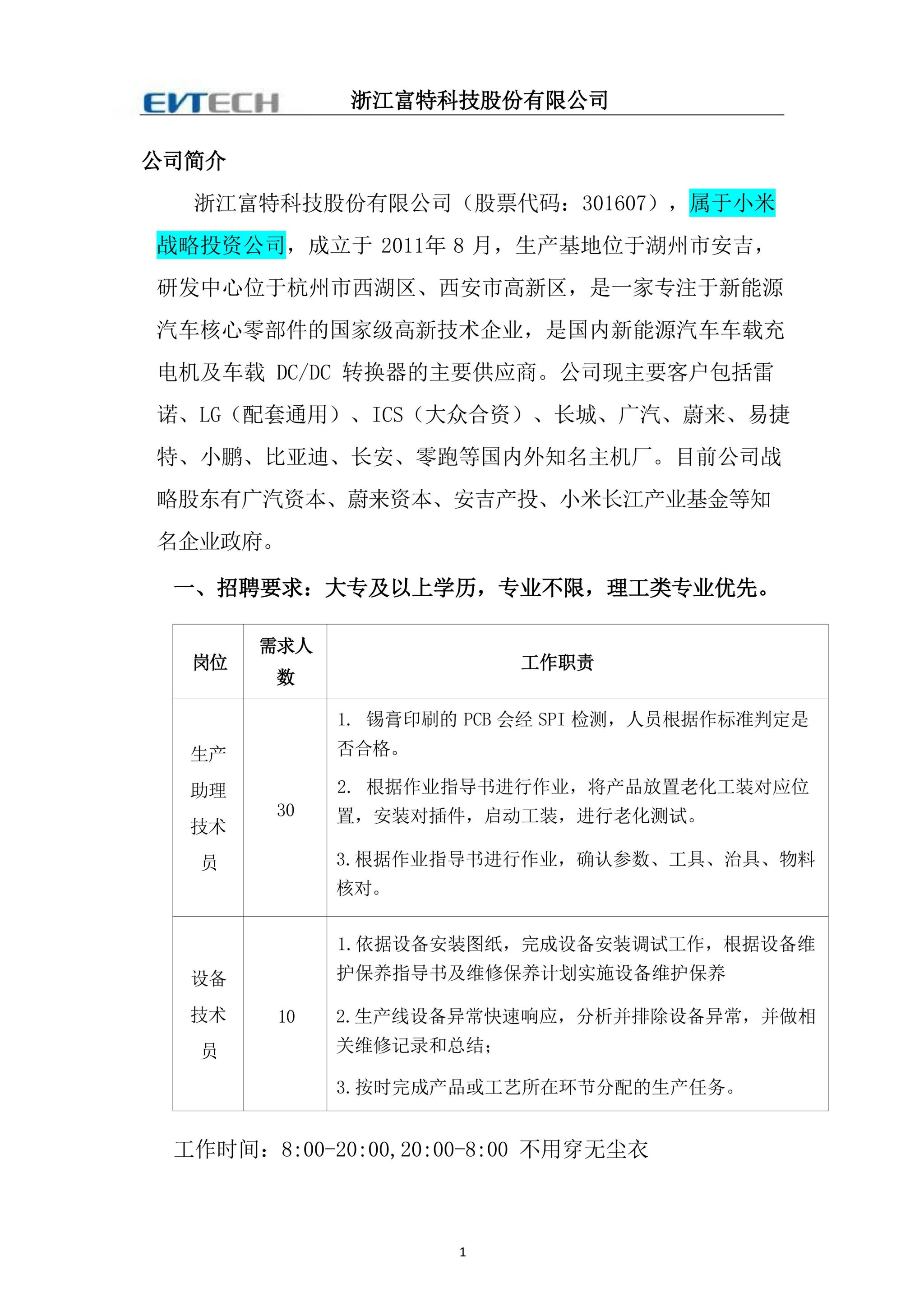 浙江富特科技股份有限公司浙江富特科技股份有限公司招聘简章